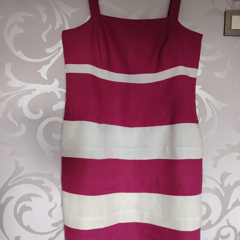 Nydelig kjole fra italienske Peruzzi. Glidelås bak. Innsvinget. Meget pen. Ikke foret. Størrelse 40. Polyester. Lengde fra overkant skulder til skjørtekant ca 97 cm. Omkrets under armene ca 100 cm, liv ca 85 cm. Billigste porto. Se også mine øvrige annonser.