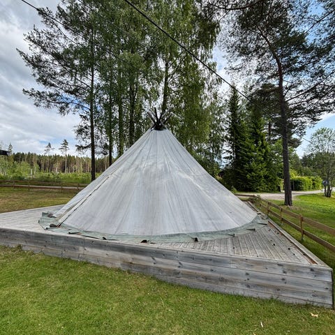 4manns lavvo, enstangs. Med bunnduk og hette.