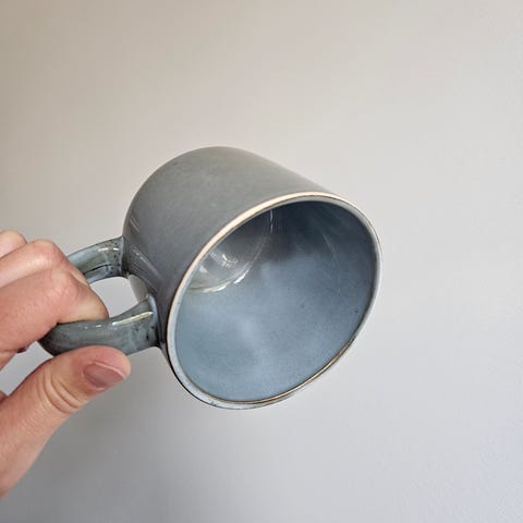 Kjempesøte litt uvanlige keramikk kopper med blåmalte detaljer- litt 80-talls look, men i veldig bra stand , ser nye ut.