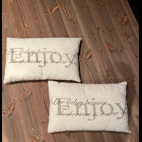3 Putetrekk. Beige med mønster. Litt striesekk aktig. 46x46 cm. Til jul?
