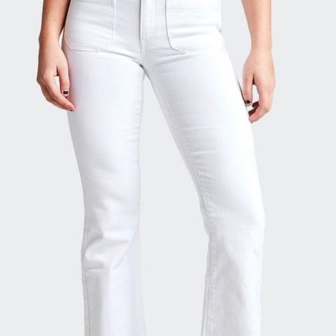 Selger denne slengbuksen i mørkblå med hvit stripe på hver side. Størrelse medium men tilsvarer mer en small, lite stretch. Knyting i livet, kult design med sømmer og lommer både foran og bak! Hadde beholdt den om jeg fikk den på meg🙈