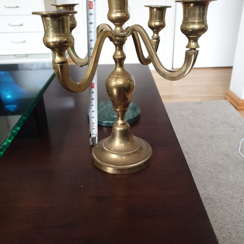 Gammel 3-armet lysestake i massiv messing. Gamle gjenger.