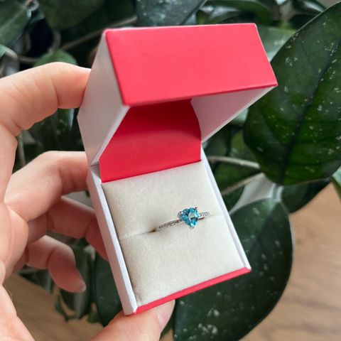 Ekte London blå topas på 1.5 karat i str 57 us 8
