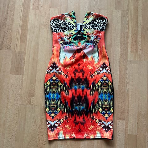 Pent brukt, hel og ren. Smal. Fra Nastygal. Fargene er litt mer blass i virkeligheten. Normal til liten i størrelsen.