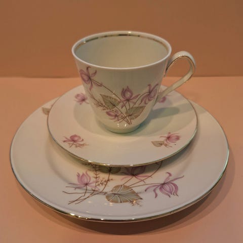 Pent brukt 6 stk kopp, skål og asjett. 10 kr pr kopp, skål og asjett. Kr 50 for alt. Kan sendes med posten eller post nord.