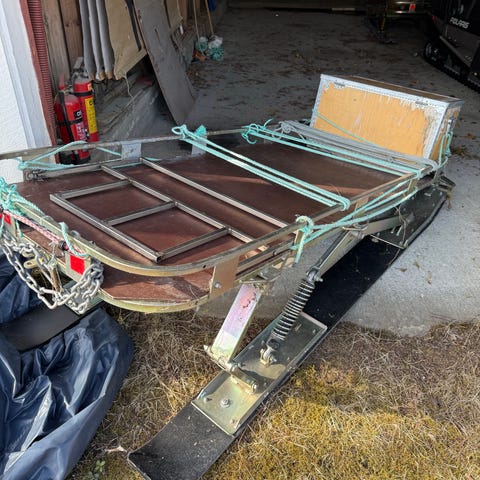 Tømmerstøtting som er laget i aluminium veldig lett kjelke og solid går også å lage på karmer så har du en veldig stor lastekjelke selges 10.000 send melding så skal jeg svare så fort jeg kan 91738594👍det er det minste prisen jeg selger den for