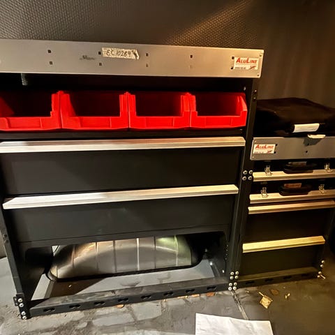 Famepla er en av DE reolprodusentene i Italia. De lager skreddersydde løsninger og disse ble laget til en motorsport trailer, der målene ble feil fra vår side. Prisklassen på disse er høy og det er industri kvalitet.