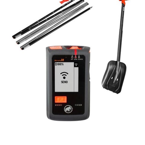 Skredpakke med skredsøker med festereim, søkestang, spade leies ut