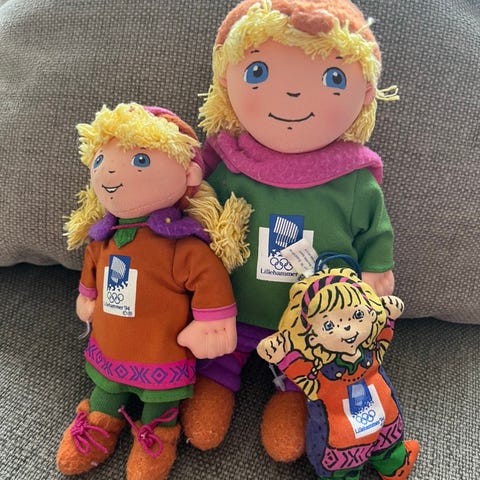 Det lille er 10,5 cm og fra 1978 (200 kroner)