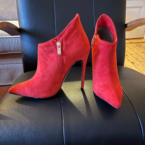 Fargen er mer rosa i virkeligheten, knall fine. Skolert, støvlett, høyhælte sko, rosa