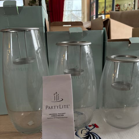 Artige te-lyseholdere i metall. Disse har aldri vært brukt og ønsker seg et hjem eller ei hytte å vise seg fram i 😊