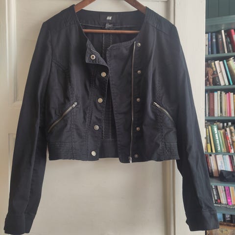 Sort kort jakke fra H&M i bomull.