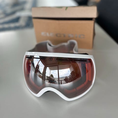 Unike, retro og ubrukte snow goggles fra Electric selges da jeg har flere til samme bruksområde. Modellen heter EG1-S, og har duggfritt halvspeil- glass i grått. Selve fargen man ser gjennom er i grå- brun, supert både i flatt lys og på dager med sterk sol, for god fargekontrast. De er i kjempefin stand, uten riper, og fortjener sårt en ny ski/ brettglad eier.
