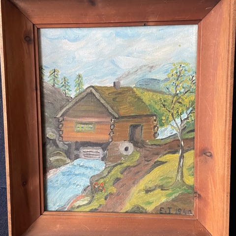 Flott maleri av hester.Bondemotiv.Flott kunst.Signert.