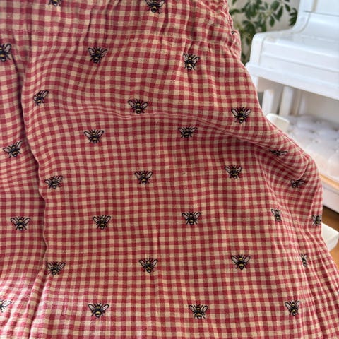 Hvite cafégardiner med nydelige grønne broderier.