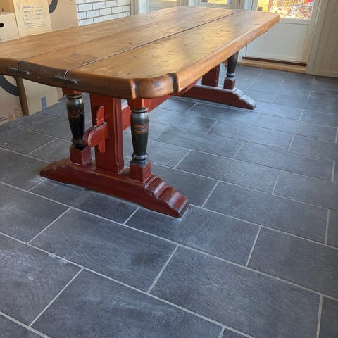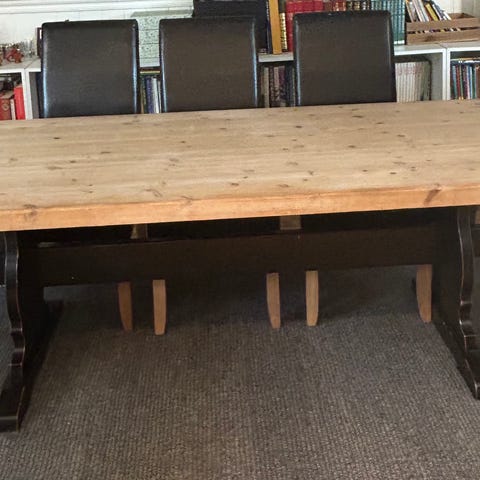 Se bilder for dette rålekre spisebordet i massivt tre.