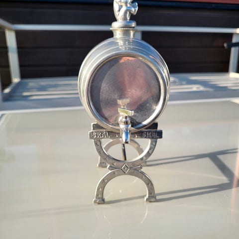 Laget av en imponerende tykk trestamme, omkrets 169 cm. Med lokk. God stand, solid og tung. Diameter 53 cm, høyde 68 cm. Flott bondeantikvitet.