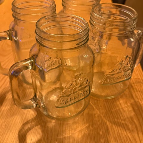 Glass som minner om Norgesglass med hank, perfekt milkshake, smoothie, drinkes osv