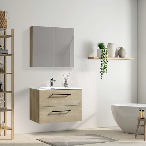 Dette stilige møbelsettet, som består av et servantskap, en innebygd vask og et speil, passer perfekt til badet eller vaskerommet ditt med et slående og ryddig utseende.