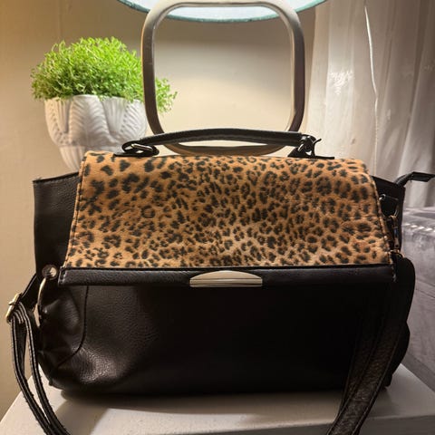 Clutchveske fra Catwalk i bronsefarget skinn. Hovedrom med 2 inndelinger, kortholder på begge sider av midtdeleren og i den ene siden (totalt 9 kort). Funksjonelle glidelåser på fremsiden med rom. Aldri brukt, leveres med original emballasje om ønskelig.