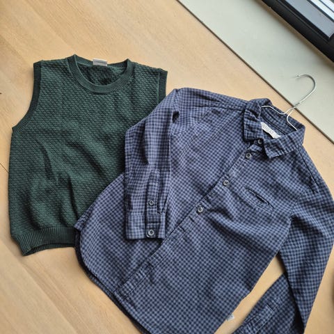 Ikke prøvd på, nye og ubrukte med lapp. Størrelse 116, 6 år - en T-skjorte fra Wheat, en kortermet bluse fra Sofie Schnoor og en shorts i jeans fra Hust & Claire.
