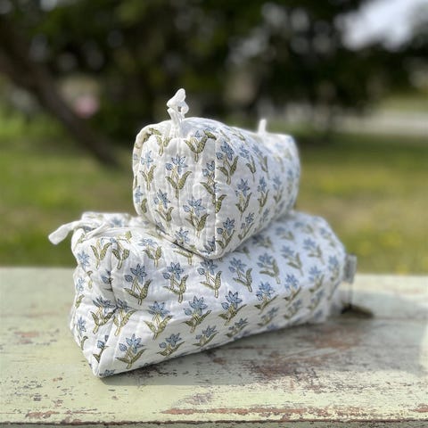 Jeg syr praktiske toalettmapper i god størrelse og i ulike fargekombinasjoner.