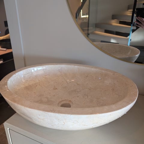 Vakker servant imiterende stein - Livia stein. Takket være teknikken der det øverste laget av servanten ble laget, har hvert element et unikt og unikt mønster. Denne effekten etterligner en naturlig stein.
