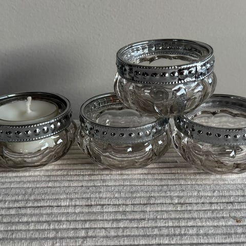 2stk telysholdere, sølvfarget glass med metalldetaljer