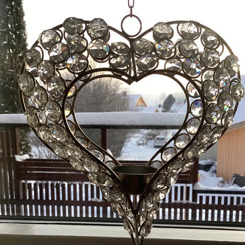 Bredde 23 cm. Høyde 10,5 cm. Dybde 10 cm, som gjør at den passer fint i smale vinduskarmer.