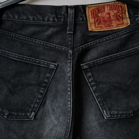 Pent brukte jeans i god vintage stand. Vintage 90s Henry Choice bell bottom jeans 26/32. Tilsvarer XXS-XS. High waist. Nærmest ingen slitasje, kun litt nederst på kanten. Pen, lys denim. Myke og komfortable, litt strekkelige, men ikke stretch. Røykfritt hjem!