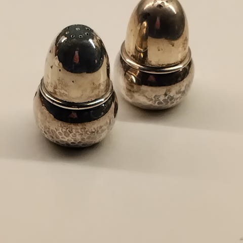 David-Andersen. Salt- og pepperbøsser i sølv og emalje