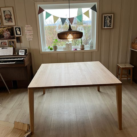 Bordplaten er behandlet med høykvalitets olje som tåler mat og vinsøl.