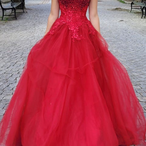 Nydelig ballkjole med knyting bak. Kjolen er kun brukt en gang og har ingen bruksmerker♥️. Jeg leier ut denne kjolen til 800kr for forsiktig bruk. Kjolen er fra Tina Ritzi i str. S, men den vil passe de fleste da den kan justeres bak.