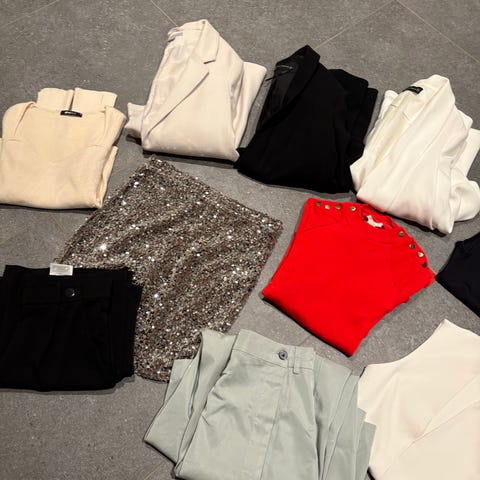 Bluser, kjoler, skjorter, dressjakke, topp.