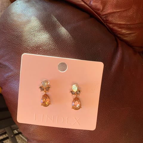 Ny fine øredobber "Dråper" til salg. Aldri brukt/prøvd. Metall, krystaller. Lys rose og blå steiner. Nickel tested.