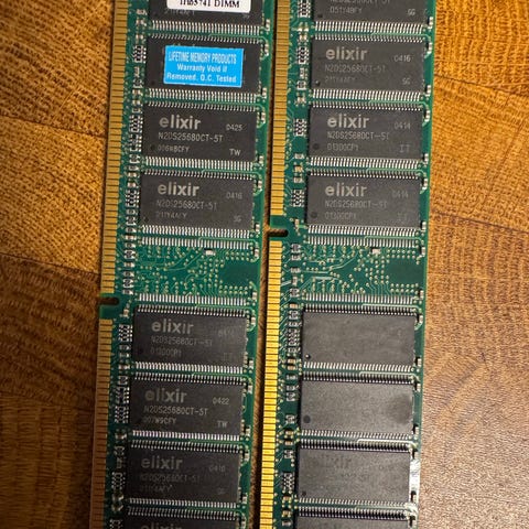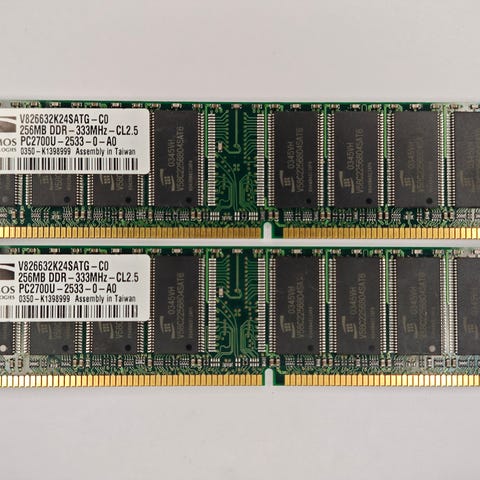 Normalfungerende første-generasjons DDR-minnebrikker. Pris er for samlet.