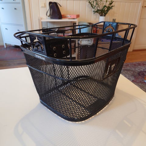 Ny sykkelkorg til sykkel uten dempegaffel . Blir festa til styre stamme og stang ned til hjulboltene . Den er stø og toler last på nokre kg