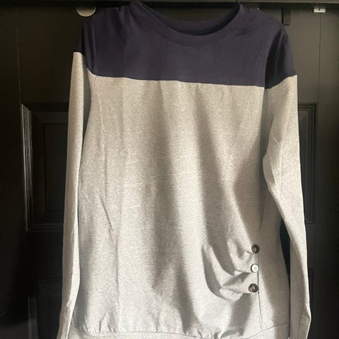 Sporty fin hvit tøyelig genser med mørke striper. LITE BRUKT!!