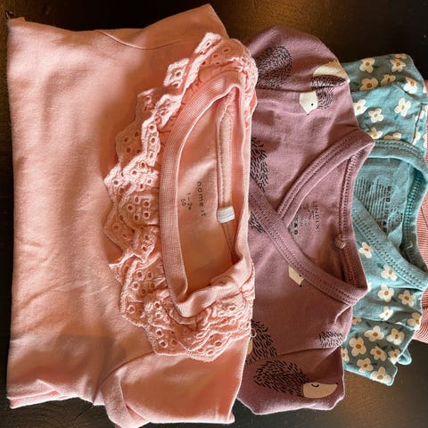 7 bukser, 1 selebukse og 2 pysjer. Størrelse 62 i bomull.