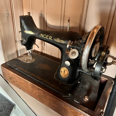 Selger to gamle symaskiner fra singer. Det ser ut som at de fleste delene er på plass. De går rundt. Benken/platen er hel og fin.