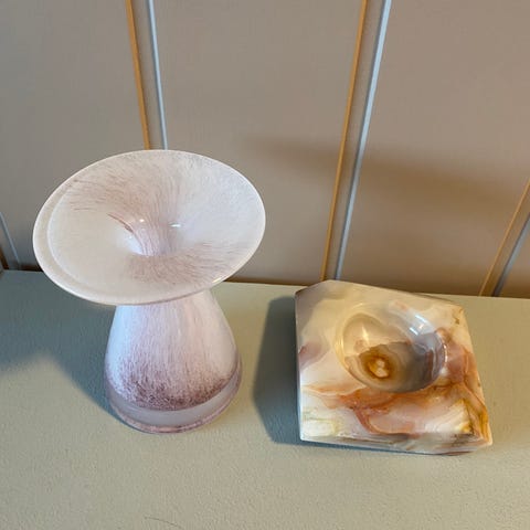 Skin med kokk i marmor, skål, smykkeskrin, selges.