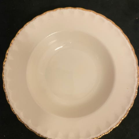 Serveringsskål fra Figgjo. Hvit med dekor rand. Usikker på design navnet.