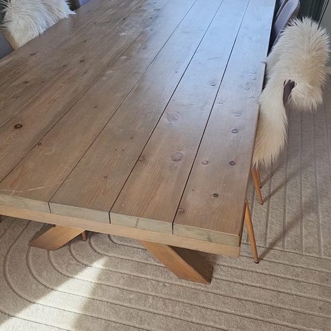 Pent og solid spisebord selges. Bordet er pent brukt og har noen skraper og bruksspor her og der, hovedsakelig etter barn i familien. Dette er kun kosmetisk og påvirker ikke funksjonen, bordet er fortsatt stabilt og fullt brukbart.