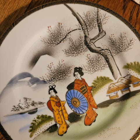 Hayasi fine china. Kutani village med Geisha.