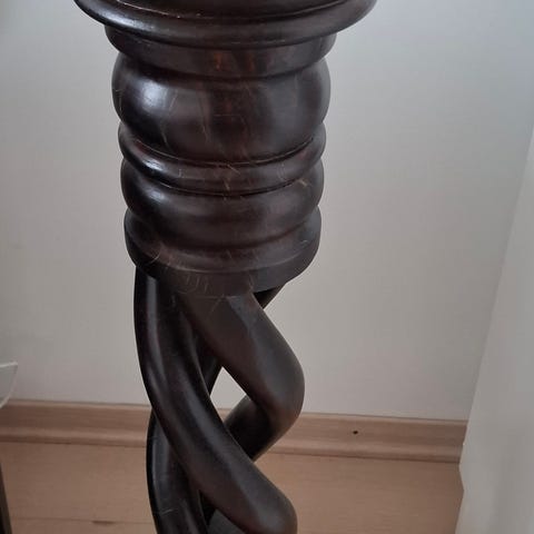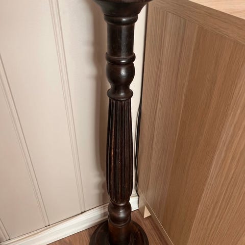 Lysestake i tre, til kubbelys. H: 61 cm. Fot Ø: 17,5 cm. Topp Ø: 14 cm.