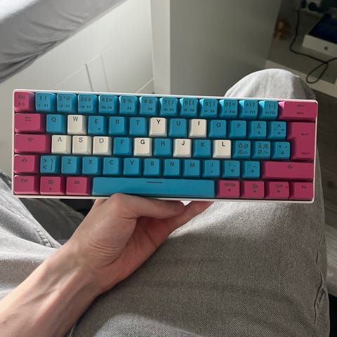 Hei der! Selger mitt POK3R RGB mekanisk tastatur, et lite vidunder i perfekt stand. Det kombinerer stil med funksjonalitet; solid bygget med et aluminiumschassis og utstyrt med Cherry MX RGB mekaniske brytere. Det beste? Du kan tilpasse RGB-bakgrunnsbelysningen for hver tast, lagre innstillinger direkte på tastaturet, og det er helt uten behov for ekstra programvare. Om du er en spillentusiast eller ofte er på farten, vil dette kompakte tastaturet ikke skuffe. Det støtter også DVORAK og COLEMAK oppsett.