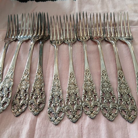 6 gamle gafler i norsk paradis mønster. Gaflene er merket med A. Selges samlet.