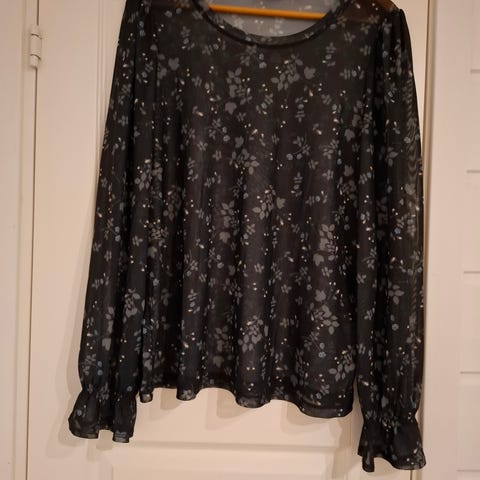 Sort bunnfarge med små blomster i hvit og rosa. Søt kappe nederst. Tilsvarer str M. som ny.Finere farger enn hva fremgår av bildet.