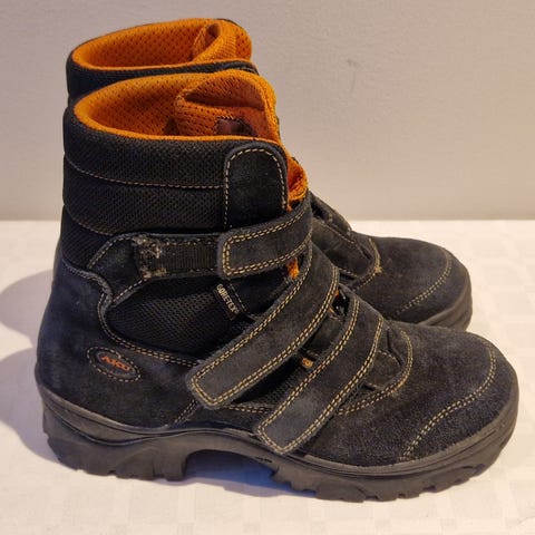 Aku Goretex vinterstøvler (turstøvler, fjellstøvler), str 37, selges. Ekstremt stødig og veloppbygd støvle med vernetupp. Lisser er byttet ut med borrelås for enklere påkledning. Veldig pent og svært lite brukt av et barn, og ingen nevneverdig slitasje. Fremstår som helt nye.