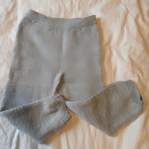 Hjemmestrikket ullbukse med knyting i livet. 3-6 år . 73 cm fra liv til beinkant. 48cm fra skrittet til beinkant. Vansker med milo. Ikke røyk